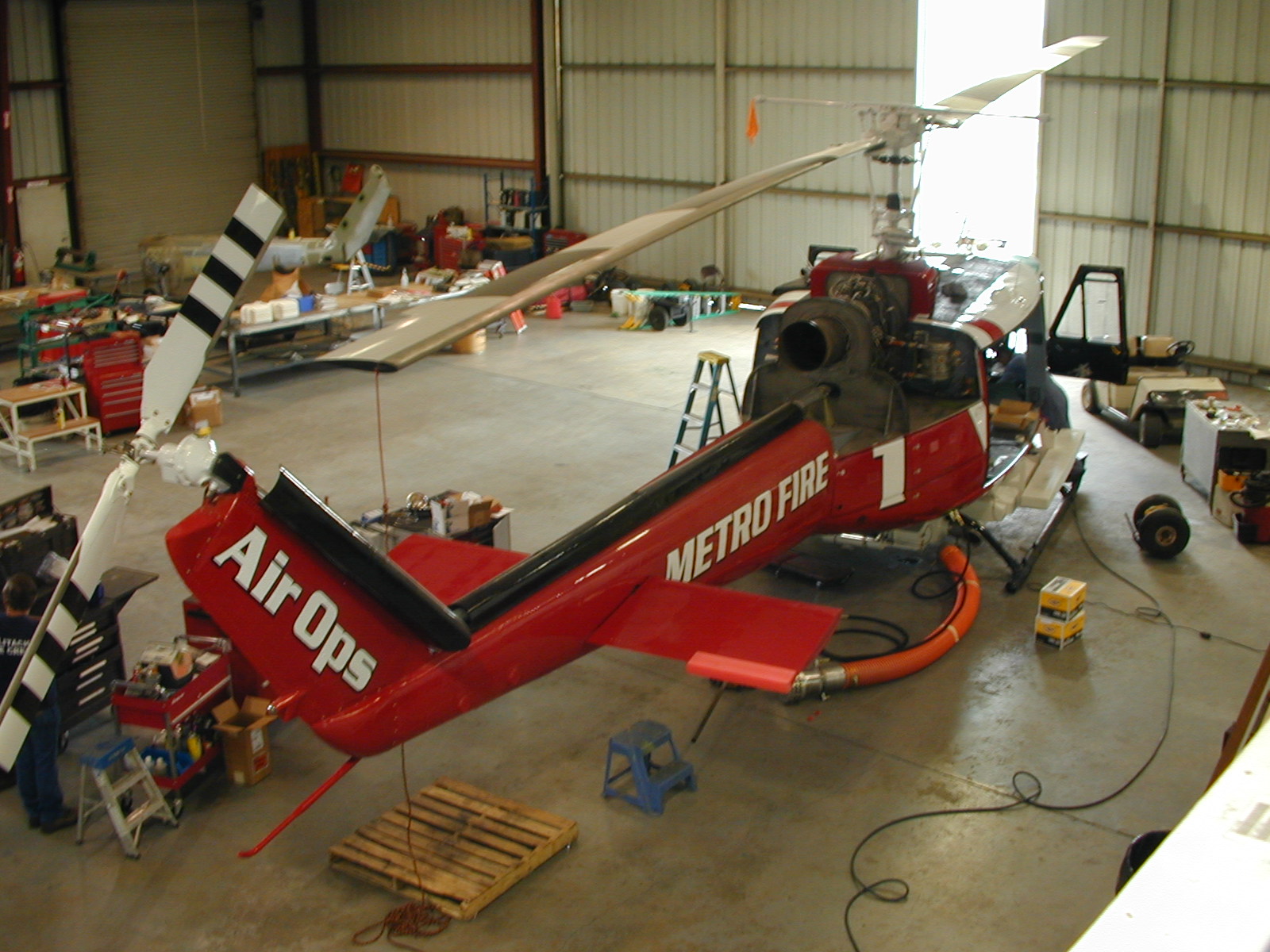 Photo shows helicopter undergoing final stages of completion before entering service.